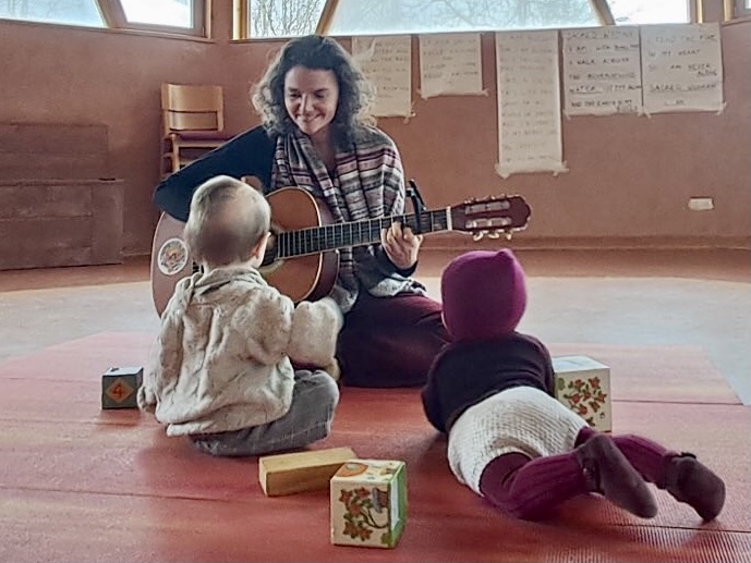 Baby’tjes slapen ondertussen of kruipen rond, kindjes spelen en komen tot rust door de klank van de rijke harmonieën.